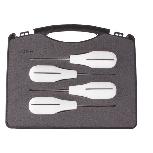 • Instrumentos luxadores con una fina y afilada hoja para cortar ligamentos periodontales.