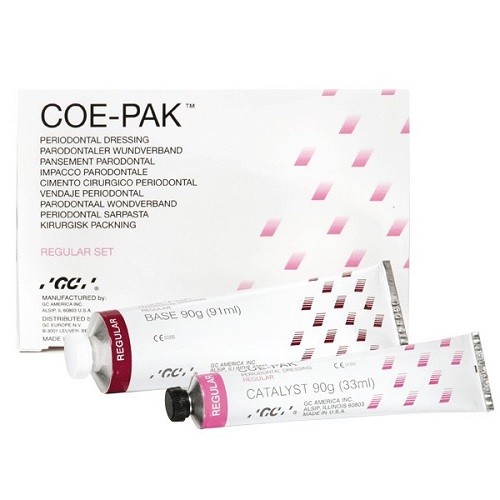 • Material en dos componentes para la cicatrización de heridas después de la cirugía, para cubrir las heridas y las suturas, y para estabilizar los dientes flojos.