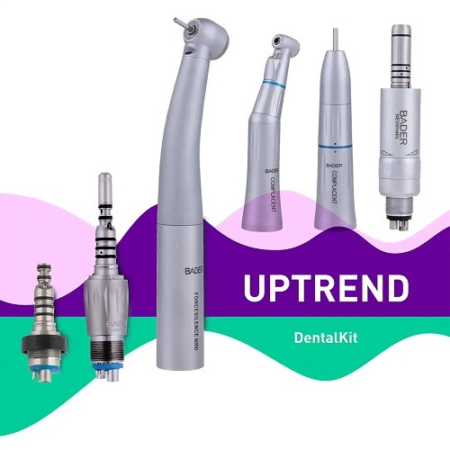1. Turbina Forcesilence 6000: con luz. Sistema de fibra óptica 25000 lux. Rodamientos cerámicos. Spray triple. >330000rpm. Conexión Multiflex®. Cambio de fresa mediante botón. 22W.