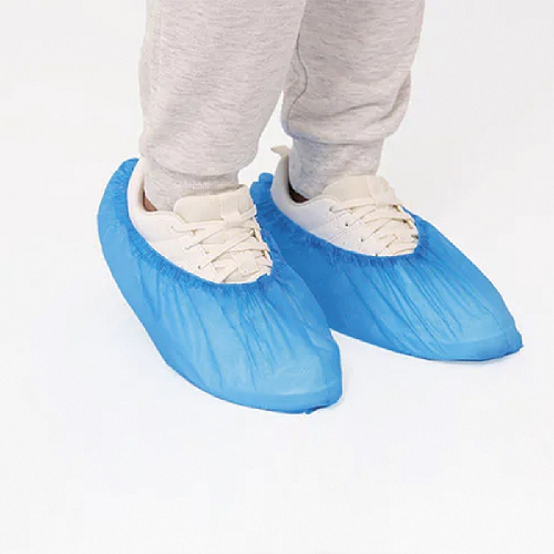 • Cubre zapatos desechables con elástico en el tobillo, fabricado en plástico impermeable.